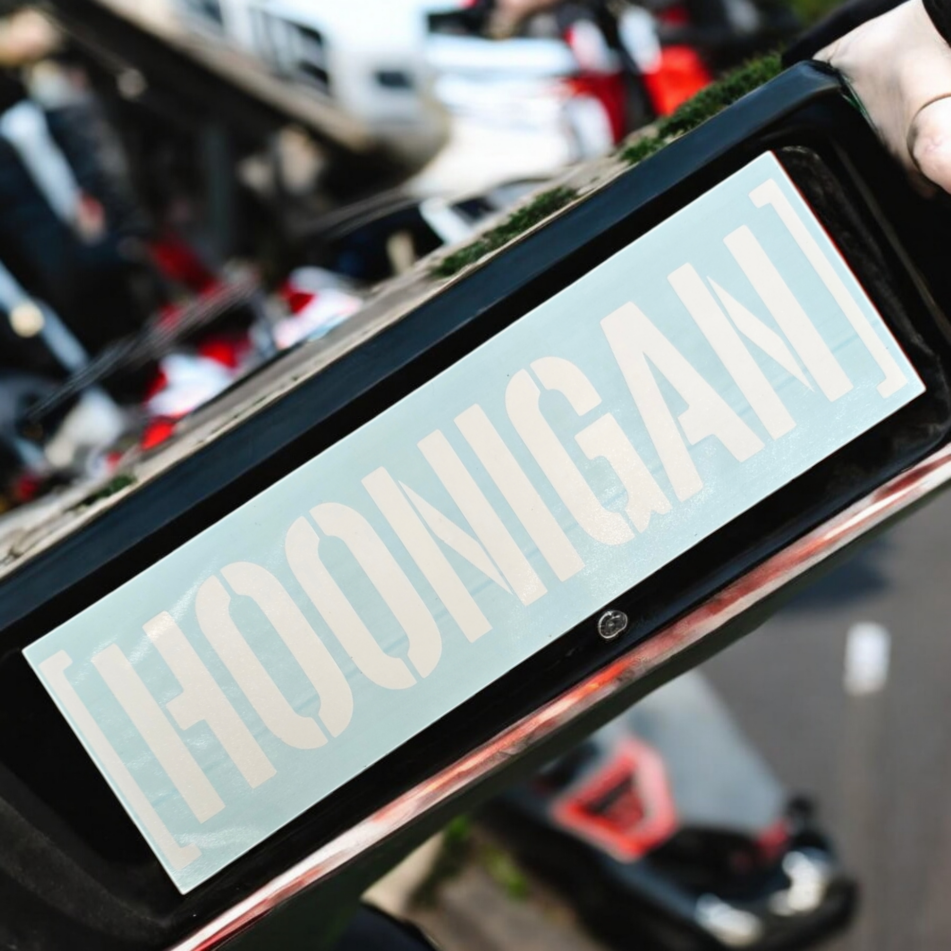 Boost your car, boat, or motorcycle with this Hoonigan Oracal 651 vinyl decal sticker. Designed for the racing community, this sticker will add a wild and unique touch to your ride. Made with durable material, it is perfect for adding some Hoonigan style to your vehicle while also lasting through the toughest races.